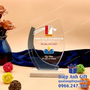 Kỷ niệm chương họp lớp mang ý nghĩa biểu tượng lâu dài, trường tồn. Được làm từ chất liệu pha lê, sang trọng, tinh tế, món quà sẽ giúp buổi họp lớp ý nghĩa, đáng nhớ hơn. Trên kỷ niệm chương bạn có thể in hình ảnh, logo, tên trường, lớp, niên khóa,…. Để mỗi khi nhìn vào, món quà lại gợi nhắc chúng ta về những kỷ niệm đẹp nhất thuở học trò. Đây là món quà rất được ưu chuộng, được lựa chọn nhiều nhất trong buổi họp mặt.