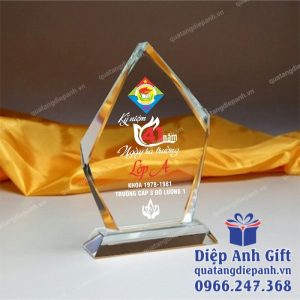 Kỷ niệm chương họp lớp mang ý nghĩa biểu tượng lâu dài, trường tồn. Được làm từ chất liệu pha lê, sang trọng, tinh tế, món quà sẽ giúp buổi họp lớp ý nghĩa, đáng nhớ hơn. Trên kỷ niệm chương bạn có thể in hình ảnh, logo, tên trường, lớp, niên khóa,…. Để mỗi khi nhìn vào, món quà lại gợi nhắc chúng ta về những kỷ niệm đẹp nhất thuở học trò. Đây là món quà rất được ưu chuộng, được lựa chọn nhiều nhất trong buổi họp mặt.